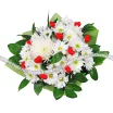 Стандартный (на фото): хризантема кустовая ромашковая (белая) - 4 шт, хризантема одноголовая (белая) - 1 шт, декор - 10 шт, рускус, фетр зеленый.